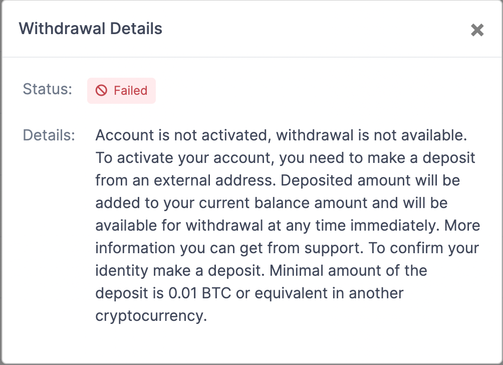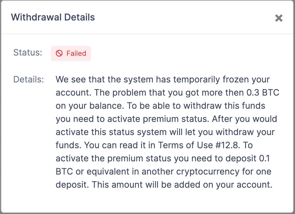 Shock, horror! That was simply not enough. Because the next message I got when I tried another withdraw attempt was: