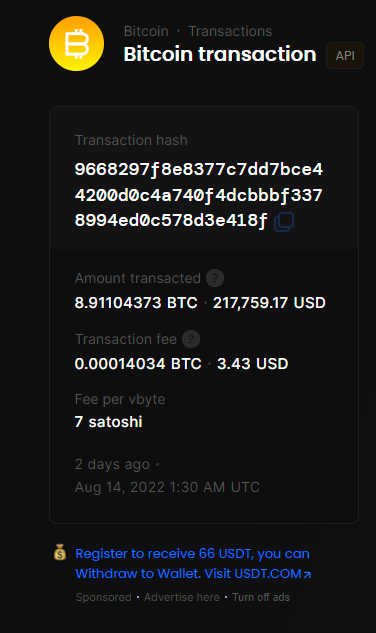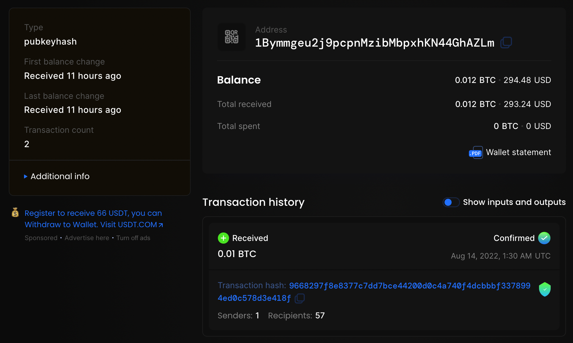 So a further update. The Bitcoin that I deposited was withdrawn on the same day: