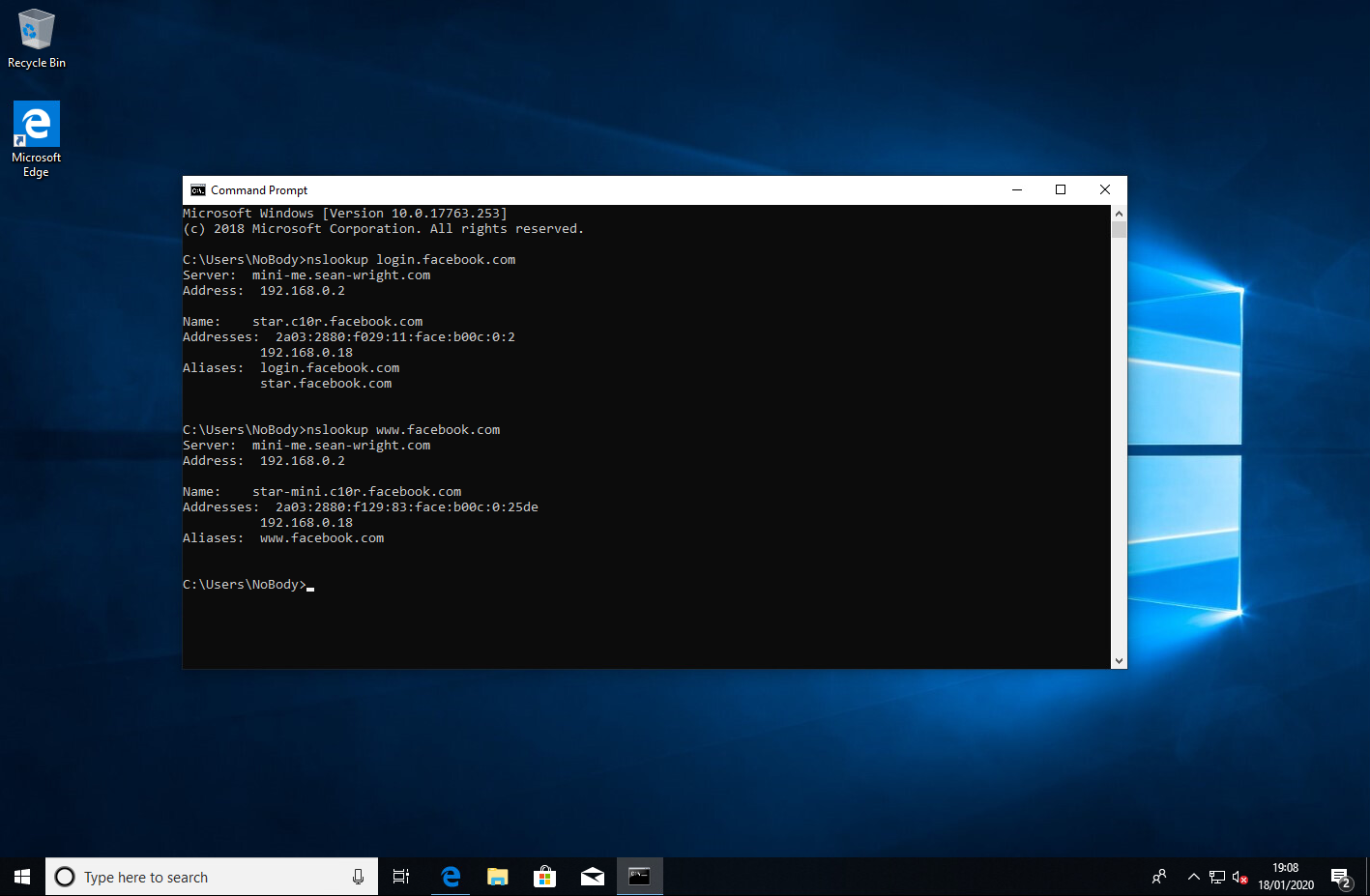 Validating the hostname resolutions on the system, confirms that the "attacker" (me in this case) has modified which system www.facebook.com and login.facebook.com resolve to (pointing instead to the system which the attacker controls):