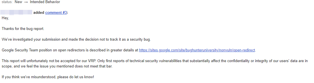 Google have even created a page attempting to explain why they believe Open Redirects are not an issue: