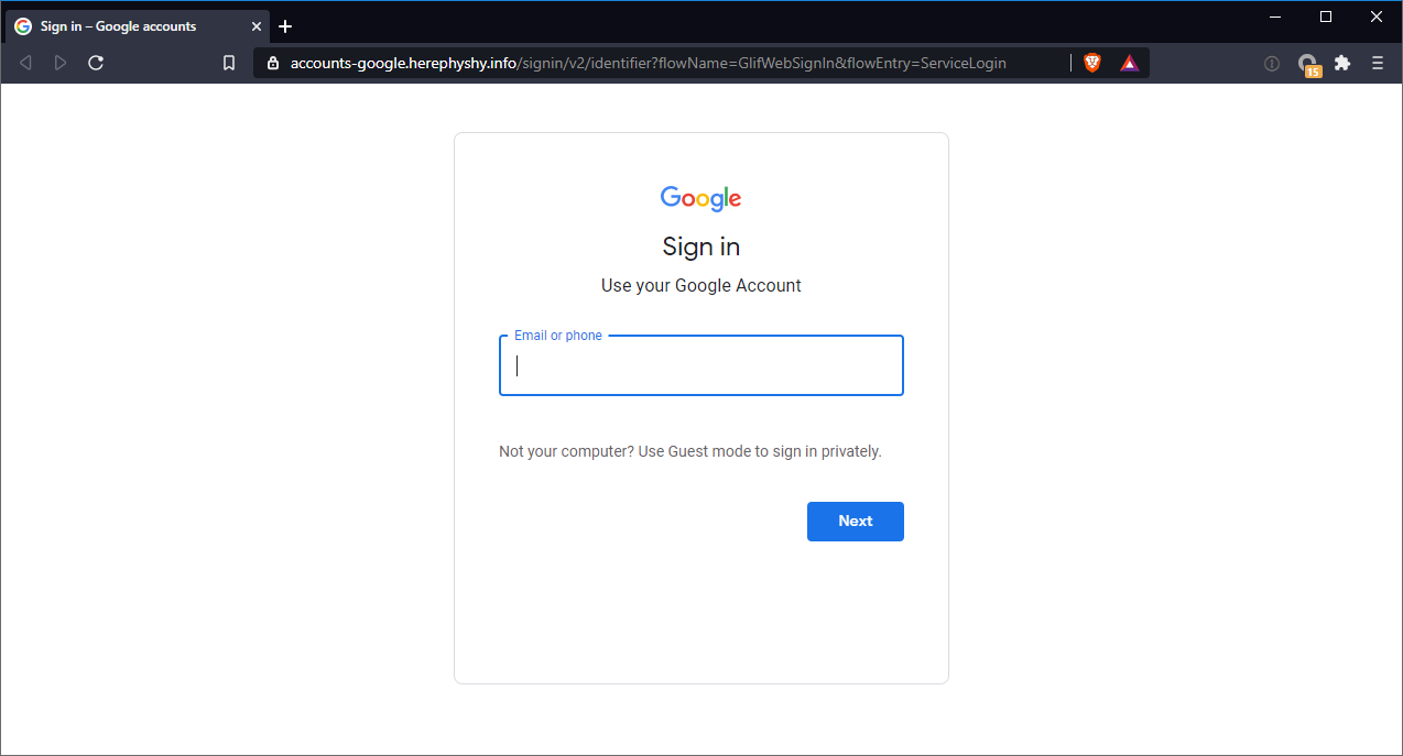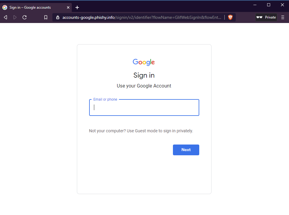 However when you look closer you will realise that it is in fact not an authentic Google login page: