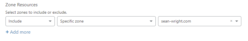 - In the Zone Resources section set a new entry to Include and the specific domain which you will have the certificate reside on: