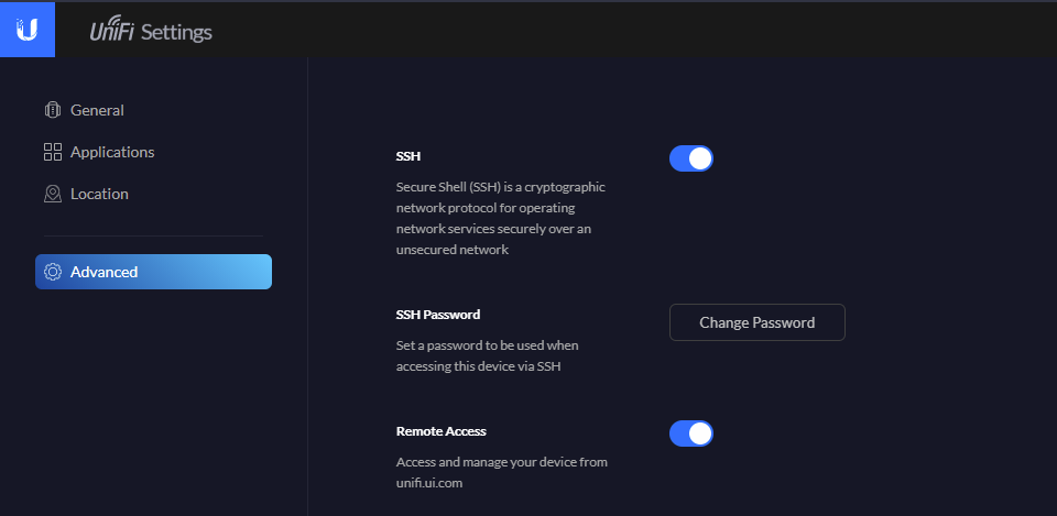- Set an appropriate SSH password by clicking on the Change Password button.