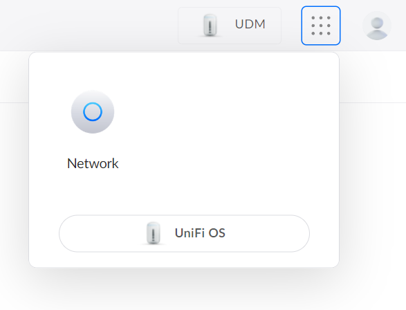The first step is to log into your UniFi controller, and go to the Network section. You can do this by clicking on the dot matrix at the top right of the page: