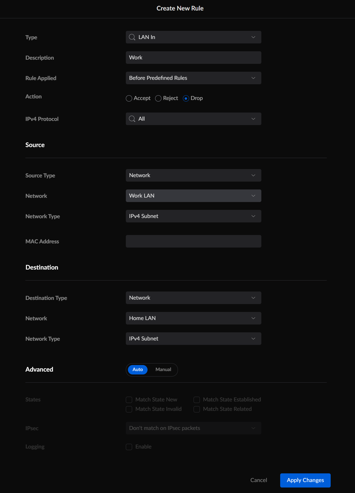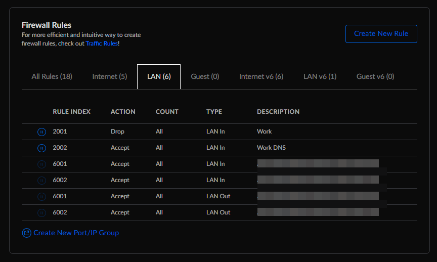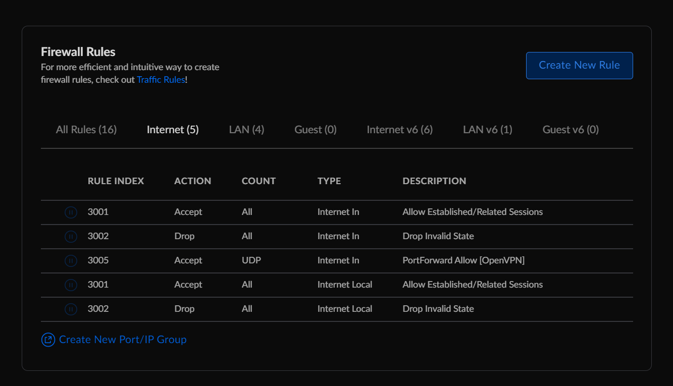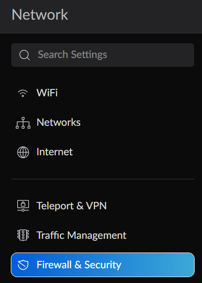 If you would like to allow access to individual systems (for example an internal DNS server that you have such as a Pi-Hole) between the network, you will need to create a new firewall rule. Head back to the Firewall & Security settings page.