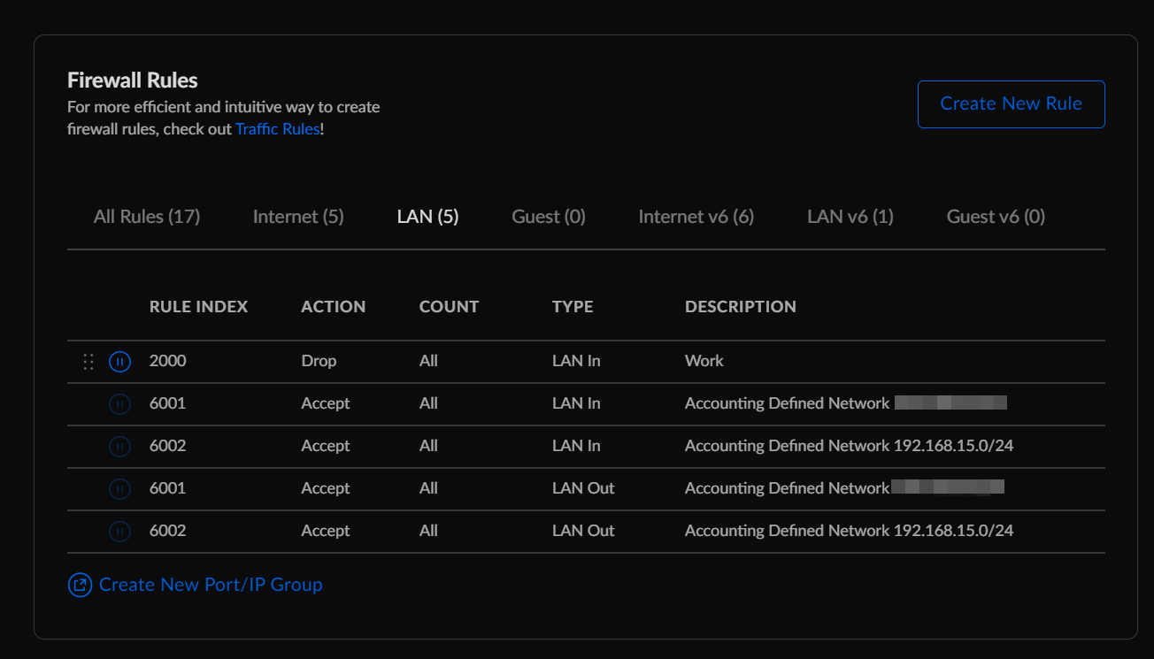 You can view your new entry in the Firewall Rules block on the Firewall & Security page. Select the LAN tab to filter the LAN rules (or select the All tab to see all your firewall rules):